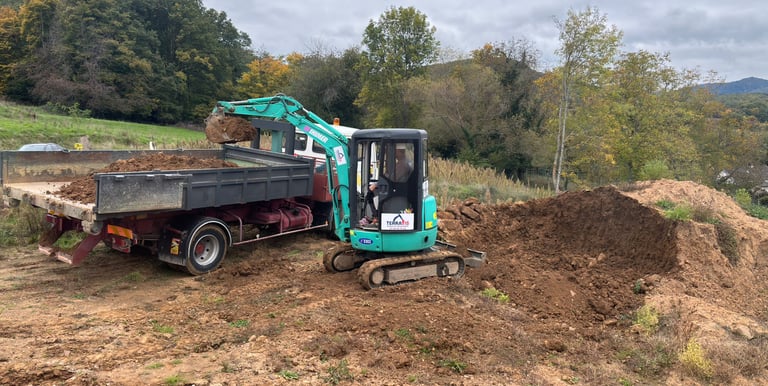 TERRAVIS offre des services de terrassement pour fondations, piscines, tranchées Evacuation de gravats, terre ...