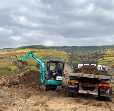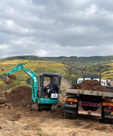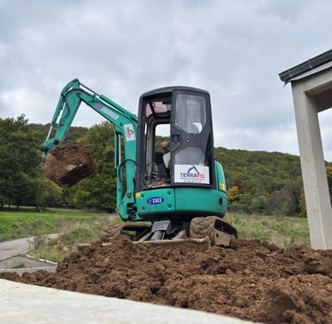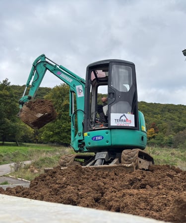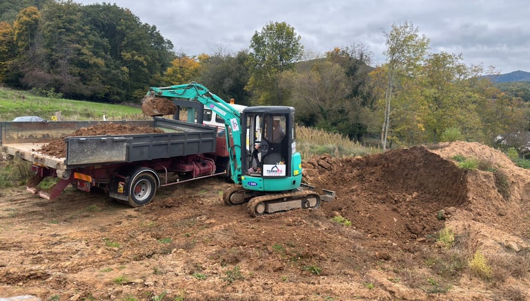 TerraVis offre des services de terrassement pour fondations, piscines, tranchées Evacuation de gravats, terre ...